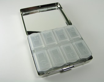Vintage square pill box nobody s perfect owls goldtone metal red vinyl top. Product title pill box travel pill organizer waterproof pill dispenser non toxic degradable portable pill container average rating. Pocket size pill box medicine tablets storage case 6 compartments small packet. Make offer gift small pill box.