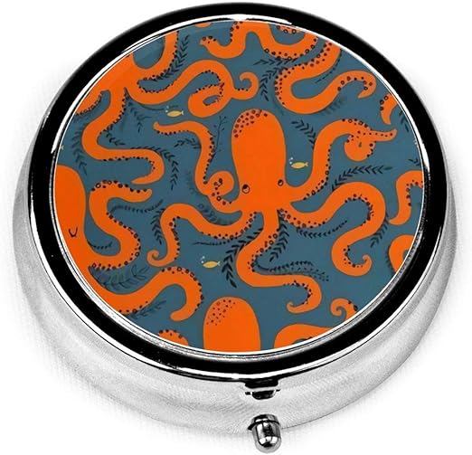 Amazon Com Orange Octopus Round Metal Pill Box Three Compartment Pocket Tablet Portable Vitamin Pill Box For Pocket Purse Round Pill Case For Vitamins Etc Daily Needs Home Kitchen