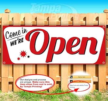 Amazon Com Come In We Re Open 13 Oz Heavy Duty Vinyl Banner Sign With Metal Grommets New Store Advertising Flag Many Sizes Available Office Products