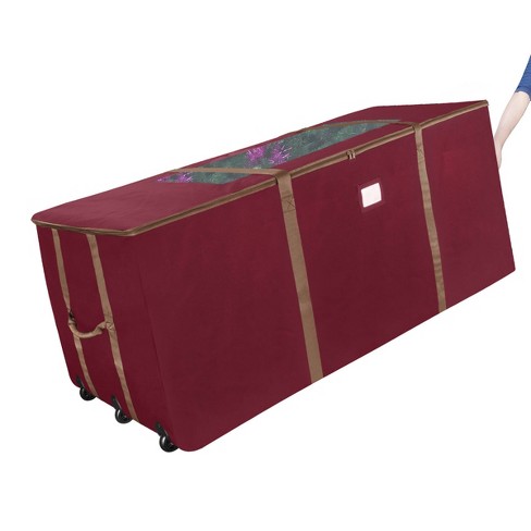 9ft 2 74m rolling christmas tree storage bag on wheels. Perfect for yard decorations holiday inflatables garland and much more. National tree company red artificial tree bag for 7 1 2 tree with rolling wheels. Having a big beautiful christmas tree is the best right up until you have to take it down. Was able in less than 10 minutes to pack the tree away for next year without any dis assembly.