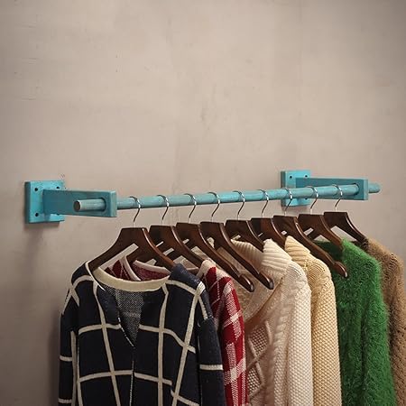 Greenstell Wall Mounted Clothes Rack With Wooden Plank 105cm 26 5cm 25cm Industrial Pipe Style Garment Rail Detachable Space Saving Wall Clothes Hanger Black Four Base Garment Rack Amazon Co Uk Kitchen Home