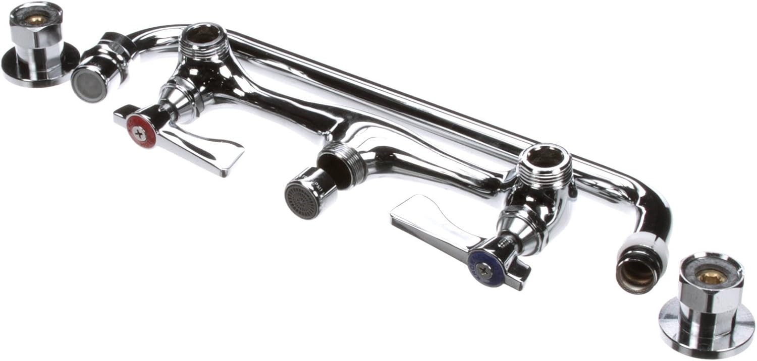 Wall mounted pre rinse faucet with swing elbows. Easy install pre rinse spring action wall mount base 8 in. This t amp s mpz 8wln 08 wall mounted mini pre rinse faucet features a 24 flex hose and spring design that provides plenty of versatility in a variety of warewashing applications while its reduced height makes it a great fit for commercial kitchens where space is at a premium. This fisher 99449 backsplash mounted pre rinse faucet is the perfect way to remove stubborn soil from dishes and cookware so that they can be thoroughly cleaned. Pre rinse unit spring style 8.