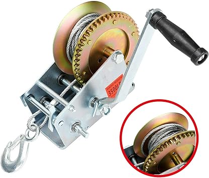 A hand winch or manual winch is a pulling or lifting device with a rope strap cable or chain wound around a rotating drum that is operated by a hand crank. 600lbs capacity heavy duty hand winch hand crank strap gear winch with 8m steel wire manual operated two way ratchet atv boat trailer marine 600lbs 4 5 out of 5 stars 188 30 99 30. The winch features steel towing cable and a positive locking ratchet pawl brake to keep a firm hold on items in tow. Available in single or dual drum models.
