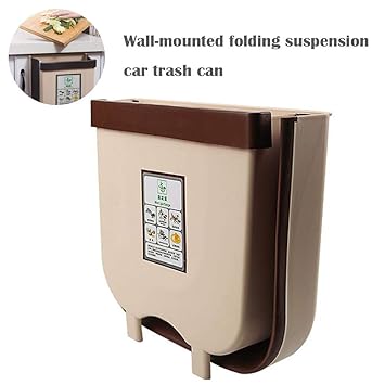 Perfuw Hanging Trash Can 2020 Upgrade Collapsible Trash Bin Portable Kitchen Wall Mounted Waste Bin For Waste Storage Kitchen Bathroom Toilet Cars 8 5 9 5 3 5in Coffee Amazon In Home Kitchen
